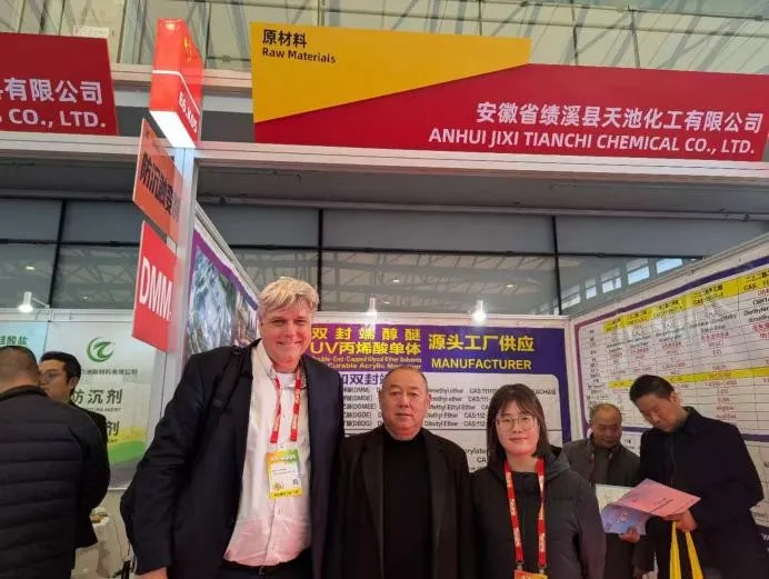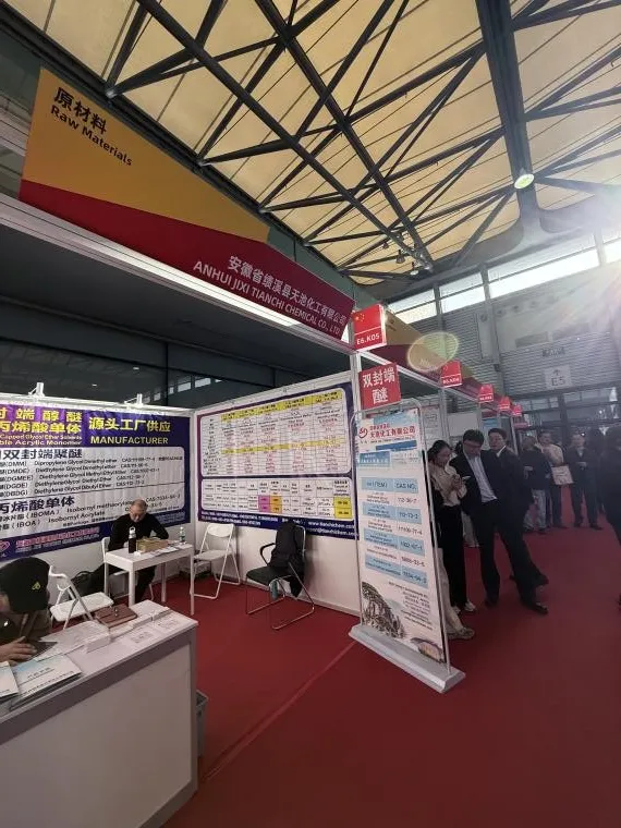 On November 25, 2025, Anhui Jixi Tianchi Chemical Co., Ltd. presented its core products at China Coat in Shanghai. As a leading fine chemical manufacturer in China, we highlighted its eco-friendly, high-boiling solvents including Dipropylene Glycol Dimethyl Ether (DMM) and Diethylene Glycol Dimethyl Ether (DMDE) , which are widely used in paints, inks, electronic cleaning, and high-performance coatings.